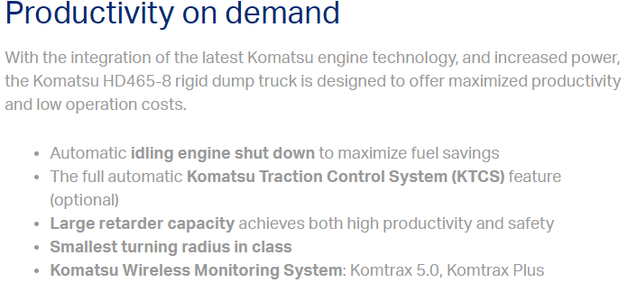 Auto Retard Speed Control (ARSC) /Small turning radius /Payload meter (PLM) /First-Class Comfort